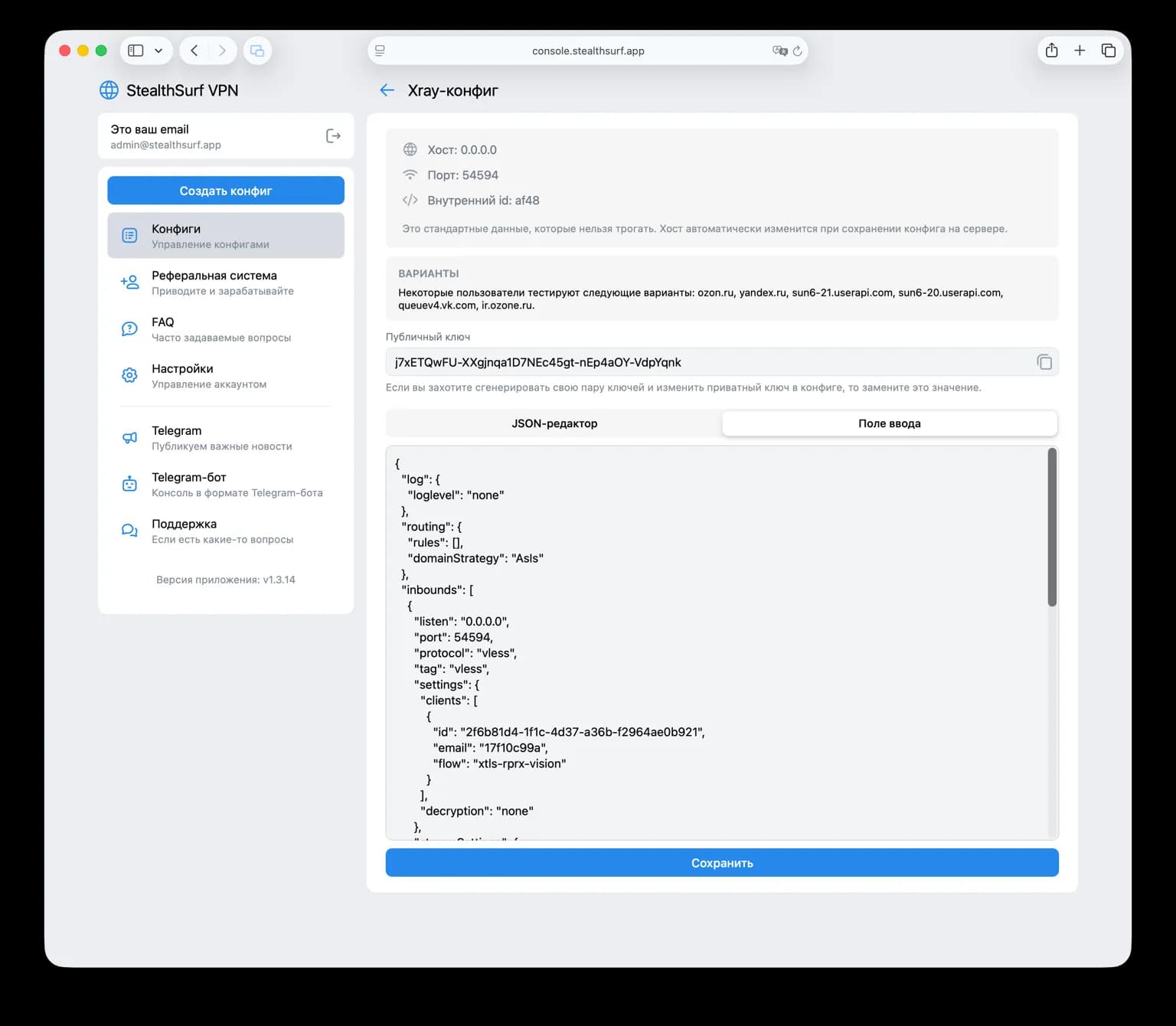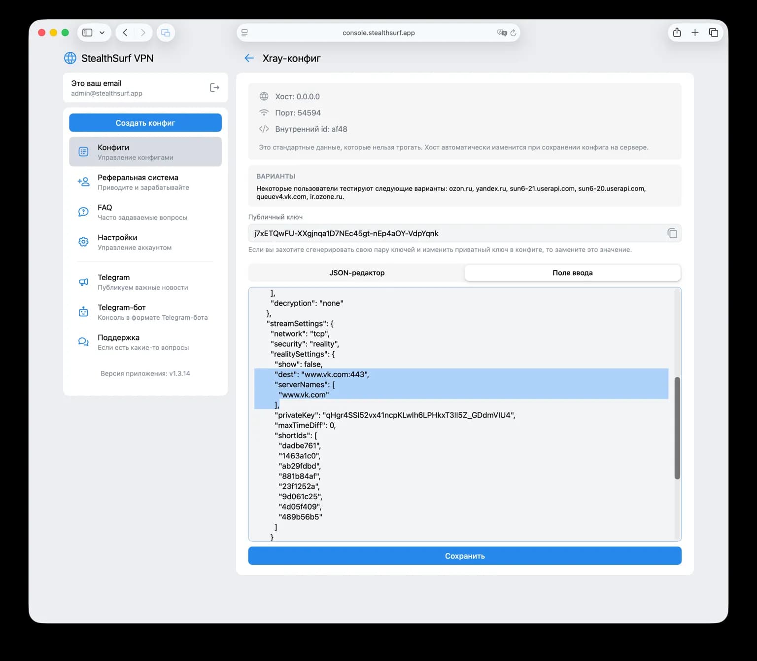 В этой статье мы расскажем, как получить доступ к изменению Xray-конфига, а также как внести изменения — например, поменять SNI и Target.