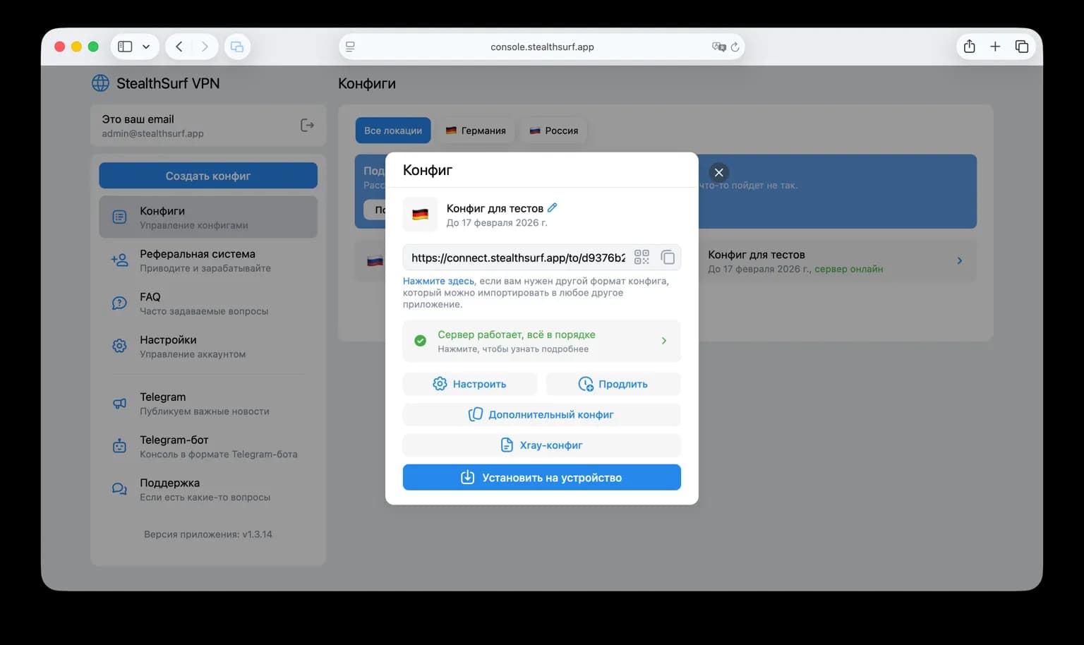 После внесения изменений конфиг нужно переустановить в приложение, следуя появившейся инструкции или нажать кнопку 🔄 в v2RayTun, чтобы обновить настройки.